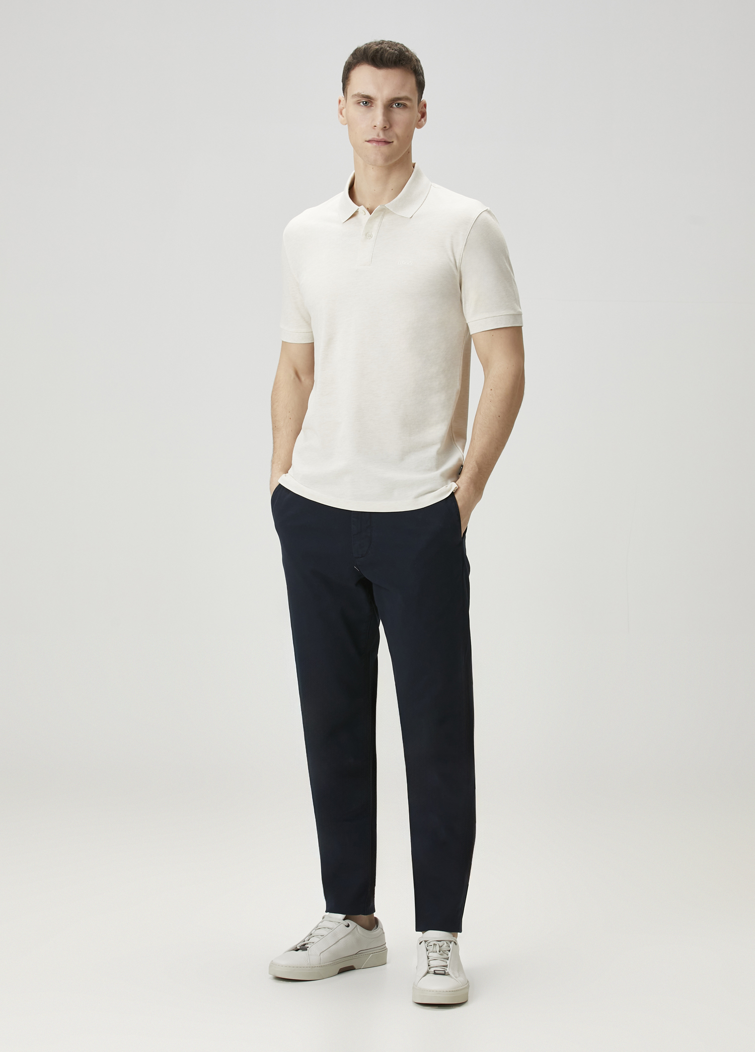 ویژگیهای محصول: تیشرت یقه پولو، دکمهدار با گلدوزی لوگو. سایز محصول: M / ابعاد مدل: قد: ۱۸۸ سانتیمتر – سینه: ۹۹ سانتیمتر – کمر: ۷۶ سانتیمتر – باسن: ۹۶ سانتیمتر.