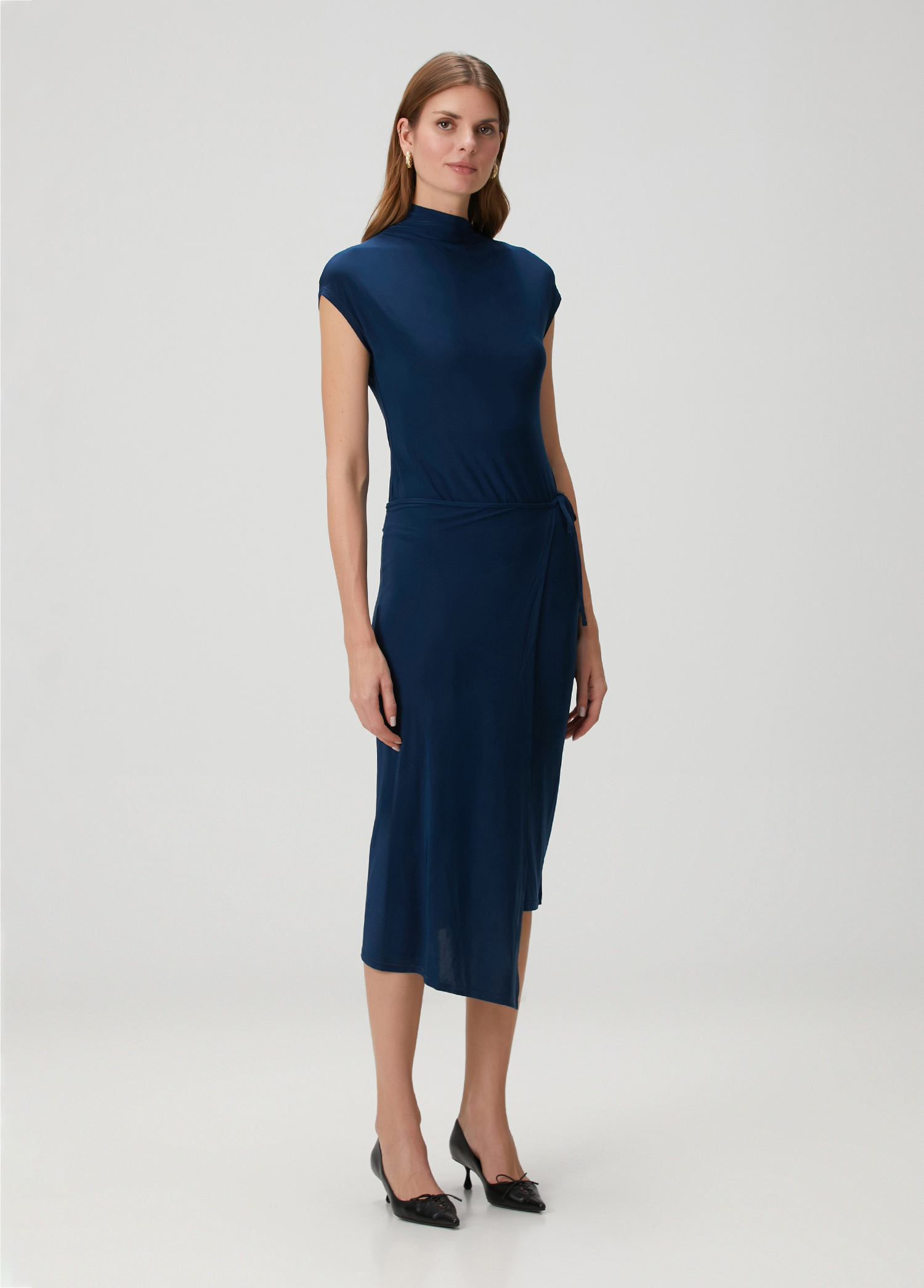 ویژگیهای محصول: لباس مجلسی یقه باز، بدون آستین، با قد متوسط و کمر کشی. سایز محصول: S / ابعاد مدل: قد: ۱۷۸ سانتیمتر – دور سینه: ۸۵ سانتیمتر – دور کمر: ۶۲ سانتیمتر – دور باسن: ۹۲ سانتیمتر.