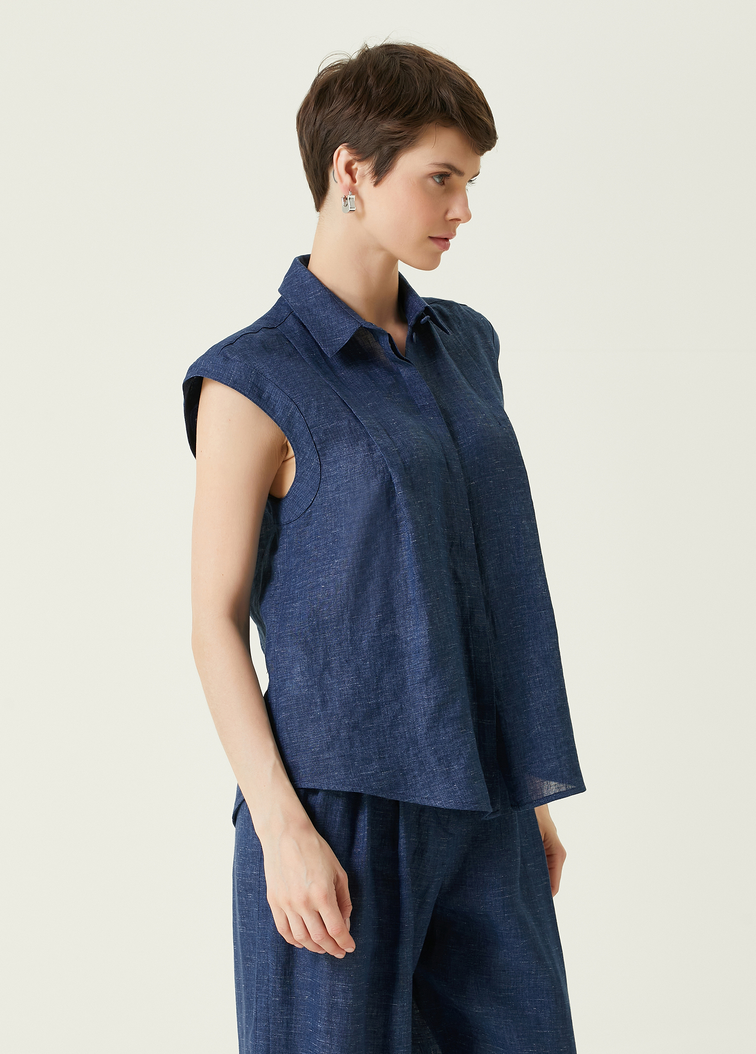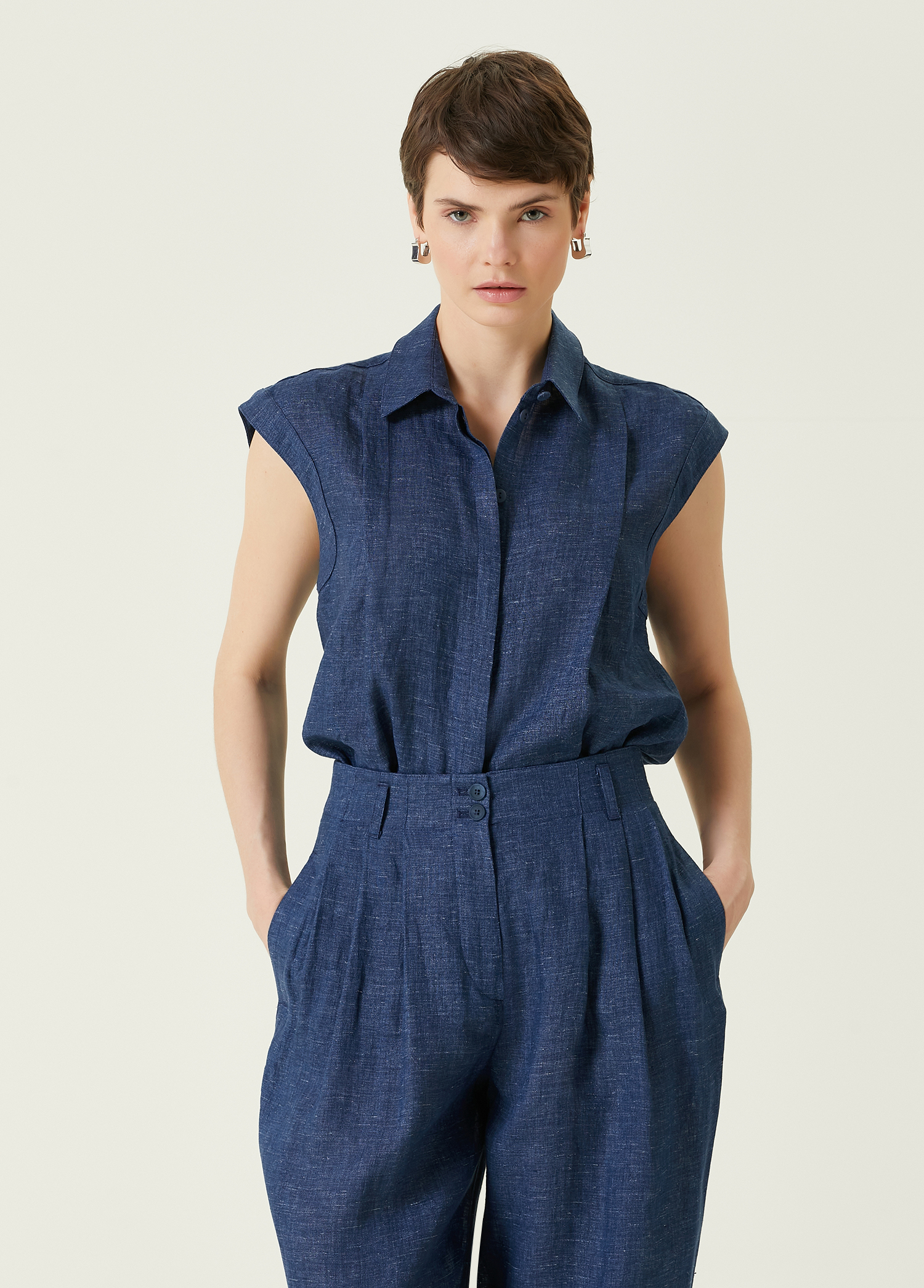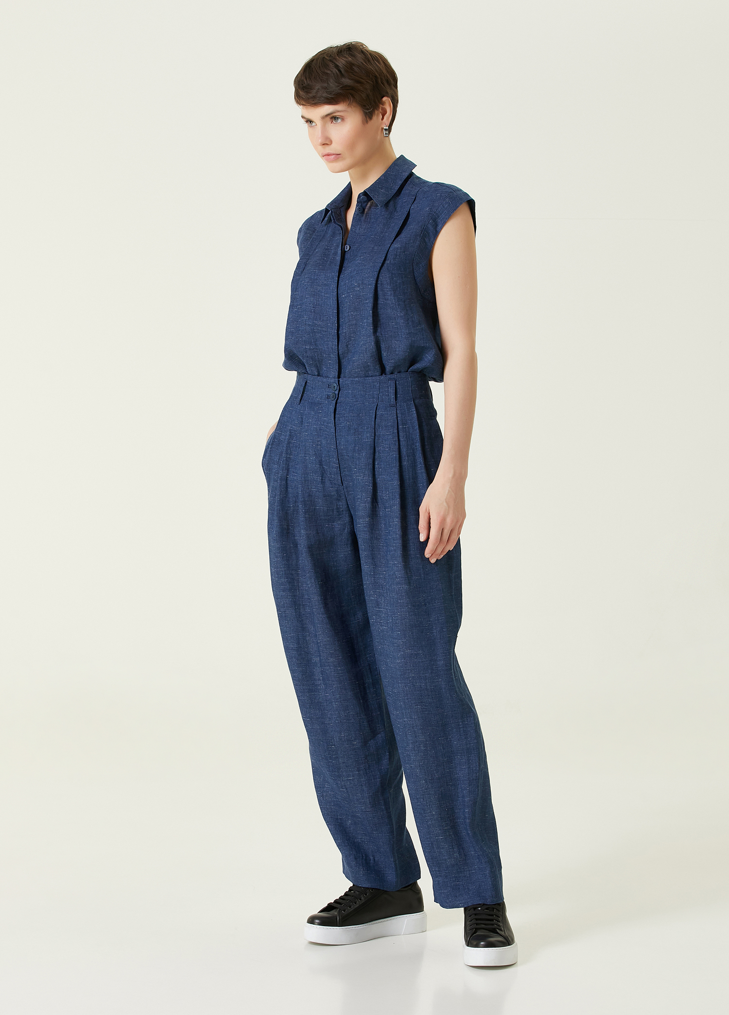 ویژگیهای محصول: پیراهن کتان بدون آستین با دکمه مخفی و چینهای ریز. سایز محصول: ۴۰ / سایز مدل: قد: ۱۷۲ سانتیمتر – دور سینه: ۸۳ سانتیمتر – دور کمر: ۶۲ سانتیمتر – دور باسن: ۹۱ سانتیمتر.
