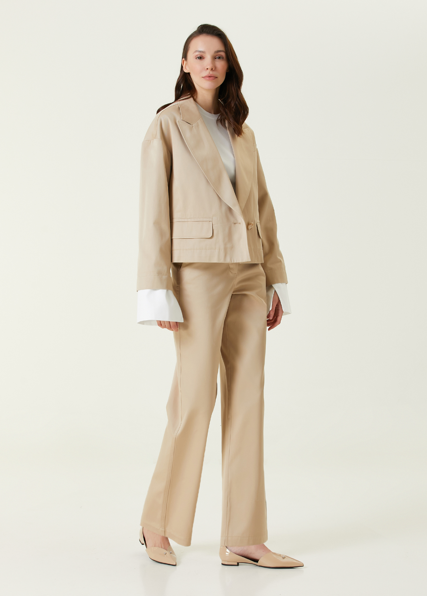 ویژگی‌های محصول: یقه چلچله‌ای، کت تک دکمه. سرآستین قابل جدا شدن. ۳ جیب. سایز محصول: ۴۰ / سایز مدل: قد: ۱۸۰ سانتی‌متر – سینه: ۸۰ سانتی‌متر – کمر: ۵۹ سانتی‌متر – باسن: ۸۹ سانتی‌متر