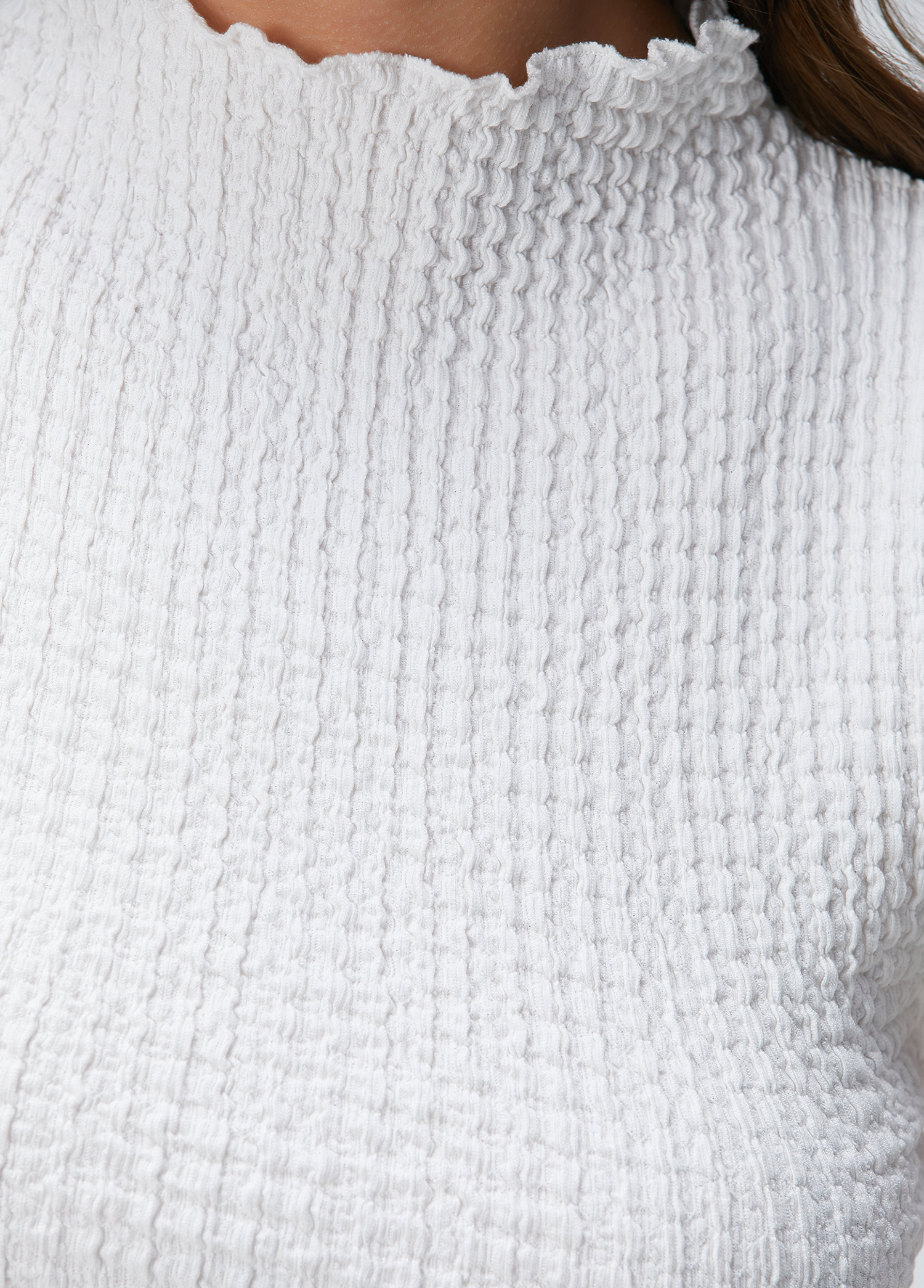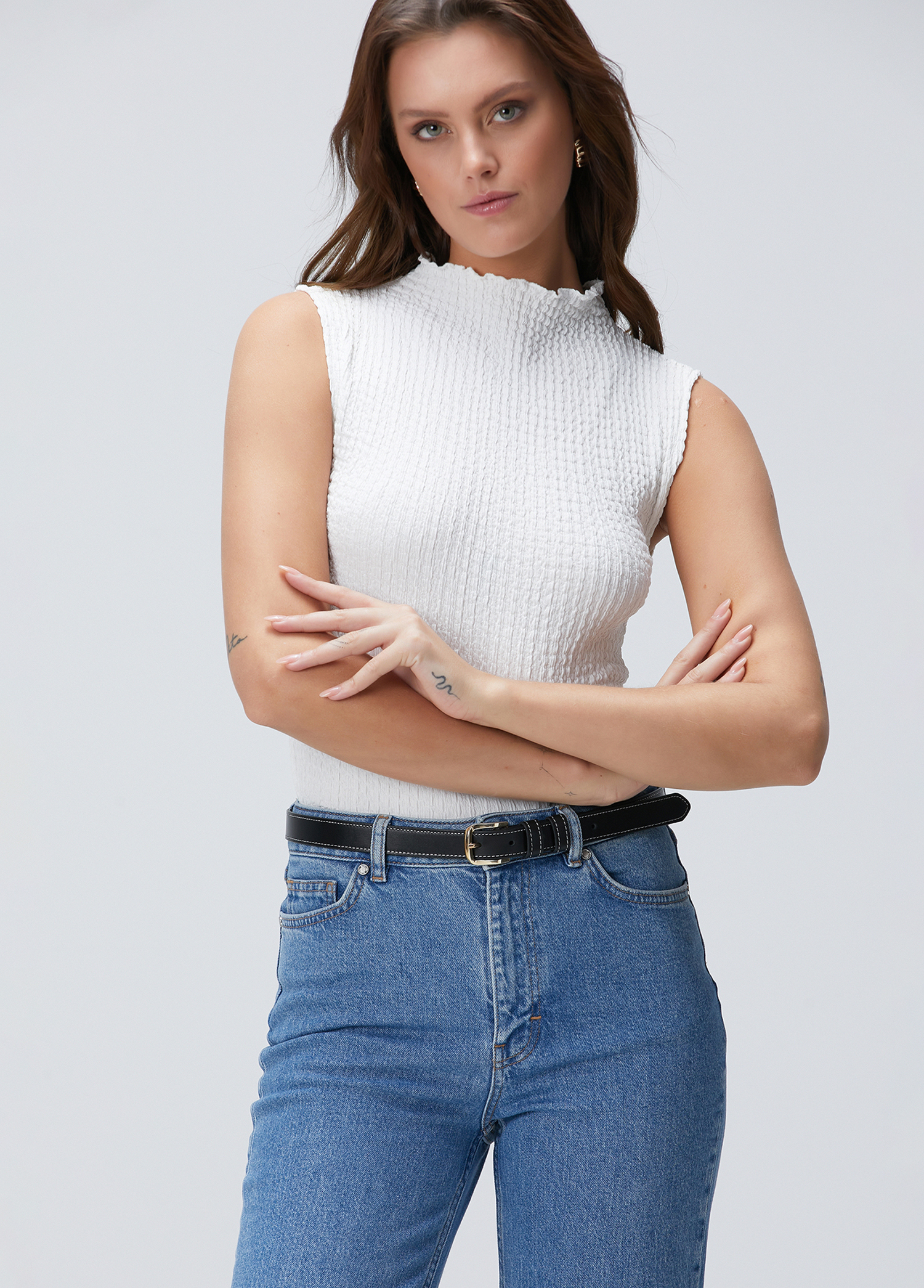 ویژگیهای محصول: بلوز بافتنی طرحدار، یقه باز، بدون آستین، اسلیم فیت. سایز محصول: سایز S / ابعاد مدل: قد: ۱۷۷ سانتیمتر – دور سینه: ۸۲ سانتیمتر – دور کمر: ۶۰ سانتیمتر – دور باسن: ۹۰ سانتیمتر.