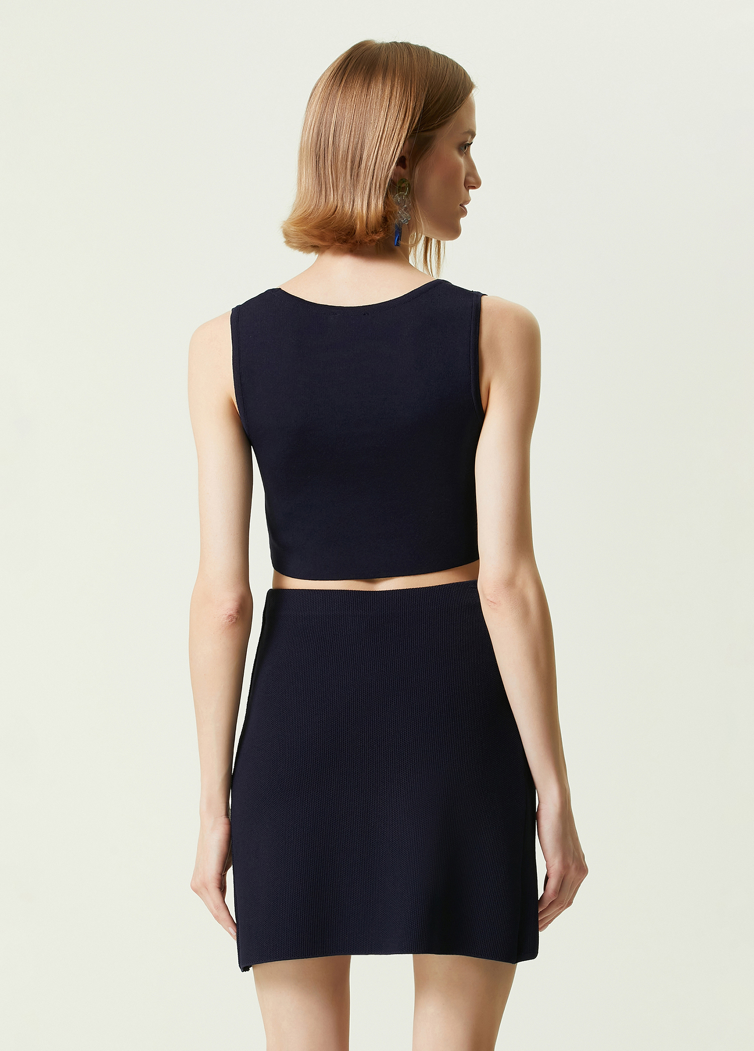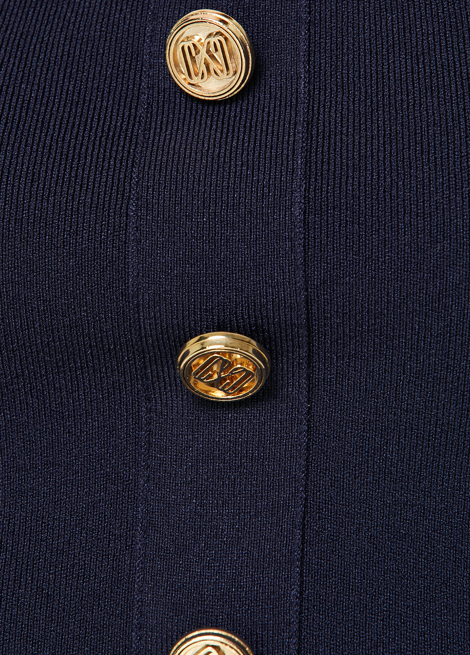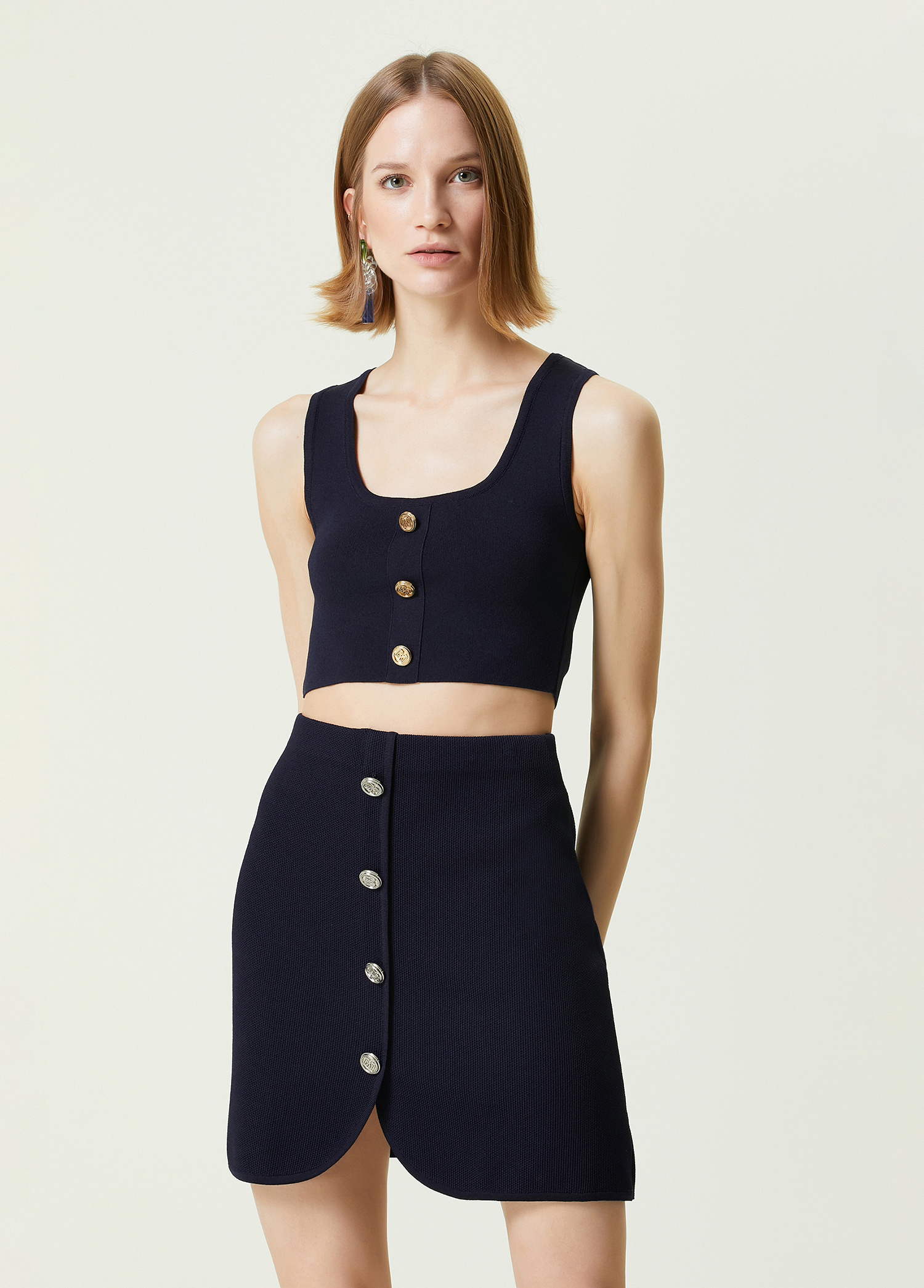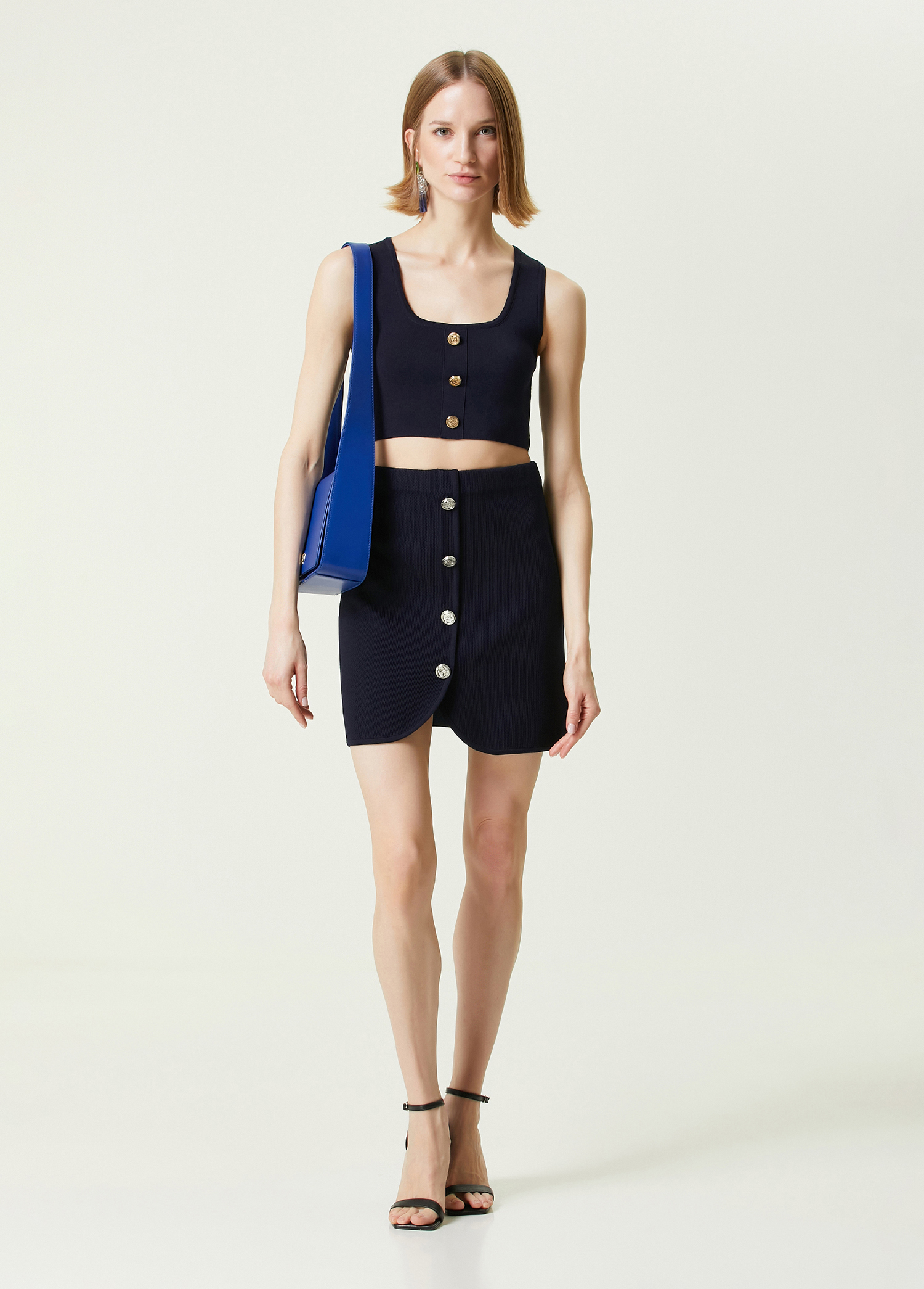 ویژگیهای محصول: یقه مربعی، بندی، بافتنی، جزئیات دکمه سایز محصول: S / سایز مدل: قد: ۱۷۷ سانتیمتر – سینه: ۸۲ سانتیمتر – کمر: ۶۱ سانتیمتر – باسن: ۸۹ سانتیمتر